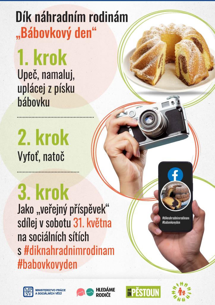 Stát se náhradním rodičem vyžaduje velkou odvahu, a ne každý se jím může stát. Společenský status náhradních rodičů však navzdory tomu není na takové úrovni, jakou by si zasloužili. Proto bychom rádi náhradním rodičům poděkovali prostřednictvím Bábovkového dne. Bábovku (upečenou, namalovanou, vyfotogrofanou, vytvořenou z písku, natočenou na video...) sdílejte na sociálních sítích s hashtagem #diknahradnimrodinam #babovkovyden. Věříme, že tato akce bude i příležitostí se o náhradní rodičovství dozvědět více informací.