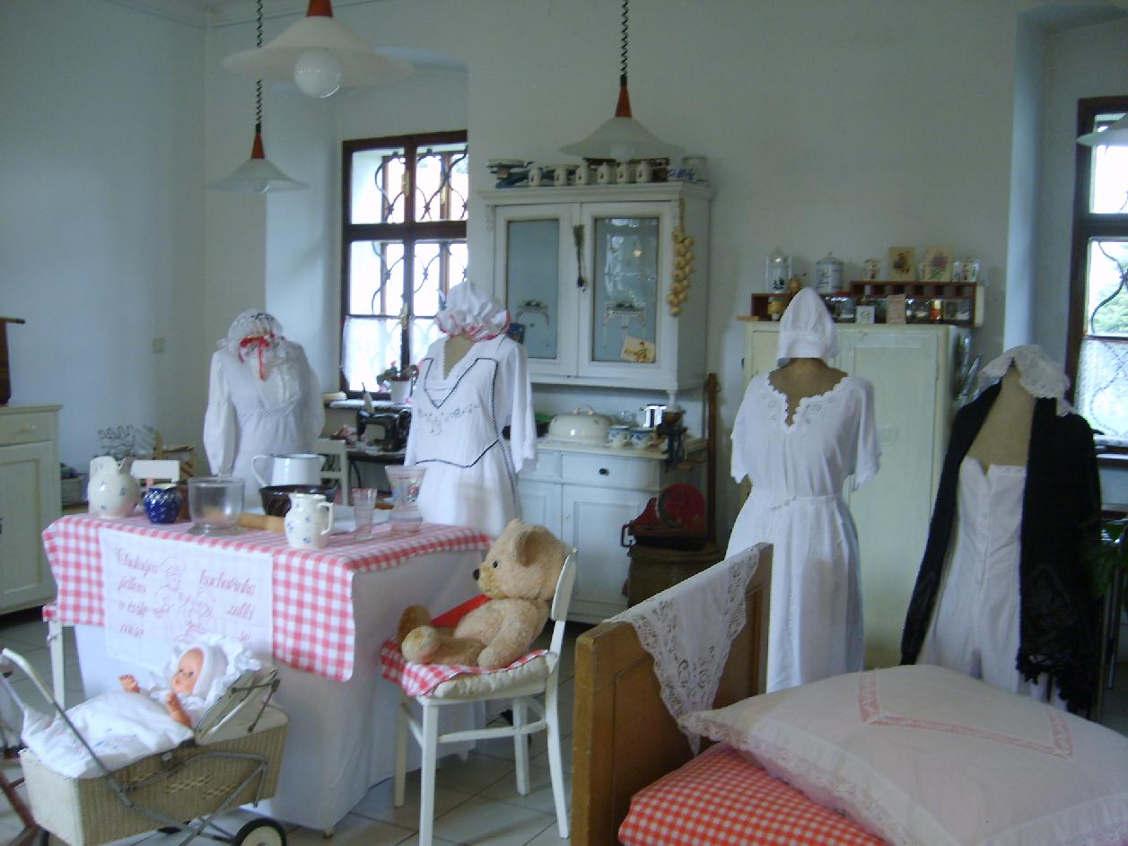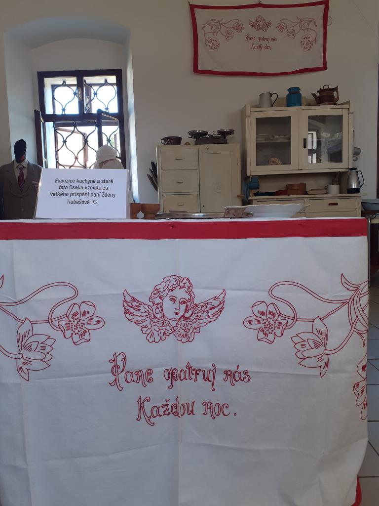 V malé galerii TIC můžete vidět dobovou kuchyni s historickým vybavením a fotografiemi, zapůjčenými p. Zdenou Rubešovou z Oseka.