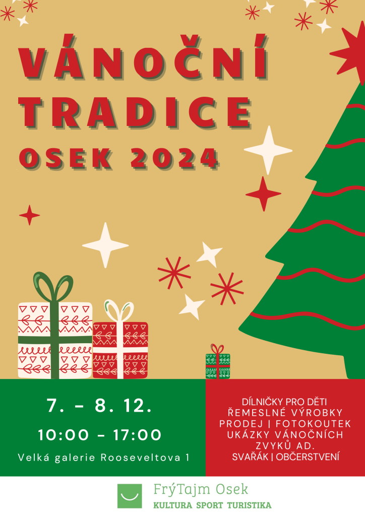 Ani letos nepřijdete o oblíbené Vánoční tradice ve velké galerii (bývalé TIC, Rooseveltova 1). Po celý víkend můžete navštívit vánoční jarmark, fotokoutek, dílničky pro děti, ochutnat svařák a zaposlouchat se do vánočních koled s historickým harmoniem.